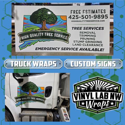 We recently completed a coordinated branding project for High Quality Tree Services, featuring a custom ACM sign for their building along with matching logos and lettering on their work truck. The sign was produced using Avery 1105 Supercast vinyl mounted to ACM Dibond for a clean, durable finish that holds up in the elements. For the truck, we used 3M Supercast vinyl to create crisp, high-visibility graphics that keep their brand looking sharp on the road. Projects like this are all about consistency—making sure your business looks professional whether customers find you at your location or see you out on a job. If you’re looking to unify your signage and vehicle graphics, we can help bring everything together with materials built to last. #EverettWA #EverettWashington #PNWSmallBusiness #LocalBusinessWA #SmallBusinessEverett #CustomSigns #ACMSigns #Dibond #BuildingSignage #TruckGraphics #VehicleLettering #CommercialWraps #FleetGraphics #VinylGraphics #AveryDennison #3MGrap