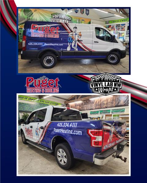 Another couple vehicles wrapped up for Puget Heating & Cooling! Partial Wrap Transit low roof van printed and installed by Vinyl Lab Wraps of Everett! . . . #vinylwraps #vinylgraphics #vehiclewraps #vinyllabwraps #marketing #smallbusiness #art #fleetwraps #decals #stickers #signs #diecutlettering #vehiclelogos #ppf #clearbra #paintprotectionfilm #STEK