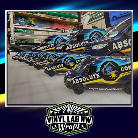 Check out this mini-vans we wrapped up for Absolute Comfort Heating & Cooling! Mini vinyl wraps make great Christmas gifts.